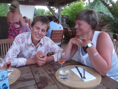 's Avonds gaan we eten bij de hippe strandtent Kiki in San Ciprianu. Een superzwoele avond met allemaal chaotische franse gezinnen die de kinderen laten rennen door restaurant en over strand. Een echte franse verjaardagsavond!